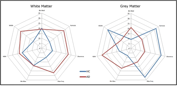Grace à l’association entre IRM morphologique et TEP amyloïde j’ai pu extraire les histogrammes de charge amyloïde dans la matière blanche et grise des patients Alzheimer et témoins. Une analyse multivariée des index issue des histogrammes de la matière blanche a montré, pour la première fois, que la fixation d’amyloïde dans la matière blanche est en relation avec la pathologie (Nemmi et al., Eur J Nucl Med Mol Imaging, 2014).
